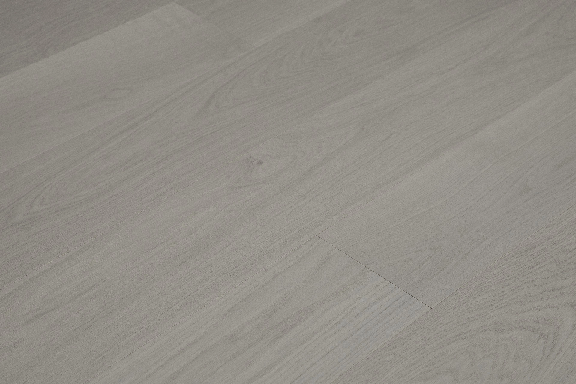 A modern choice of subtle gray color flooring. Usini Ultra is made with prime-grade White Oak Veneer in Italy.